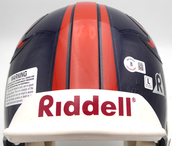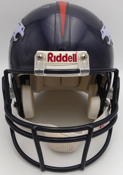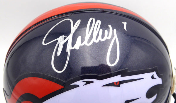 This is a Blue Full Size Authentic Helmet that has been hand signed by John Elway. This item has been certified authentic by Beckett Authentication (BAS) and comes with their tamper-proof QR Code sticker that can be verified on the Beckett-authentication.com.