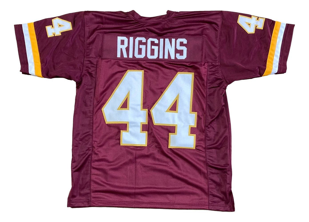 Featured is a John Riggins custom football jersey. This jersey features professionally sewn letters and numbers and is size XL. This jersey has no team tags or emblems and is intended as a sports collectible.. SPECIFICATIONS Autographed By: Team: Washington Commanders Sport: Football Authentication: