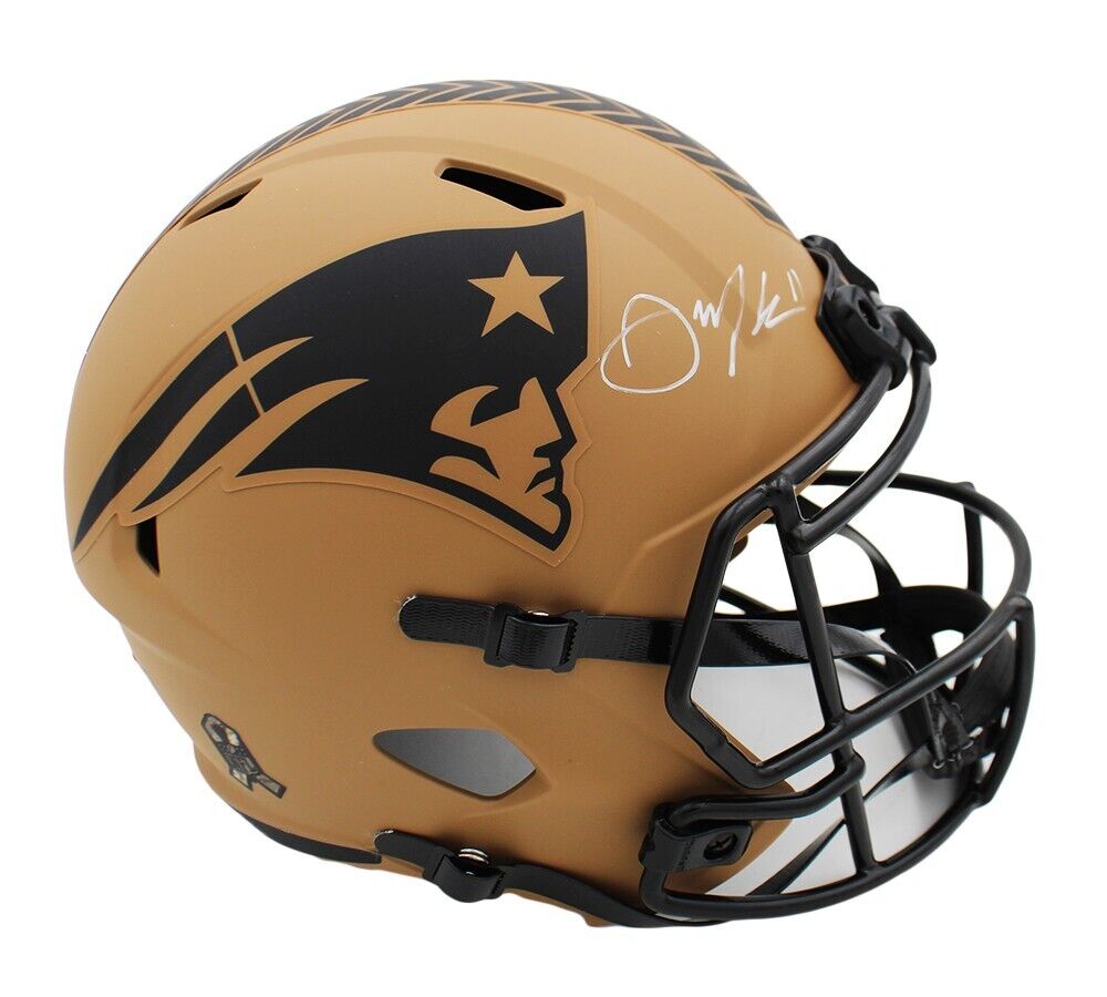 A New England Patriots Speed Replica Salute to Service 2 NFL Helmet hand signed by Julian Edelman. The item and signatures are in excellent condition. Edelman was drafted into the NFL in 2009 round 7 pick 232, and is a 3x Super Bowl Champion. AUTHENTICATION: The item is accompanied by a JSA Certificate of Authenticity - JSA Serial Numbered Hologram -
