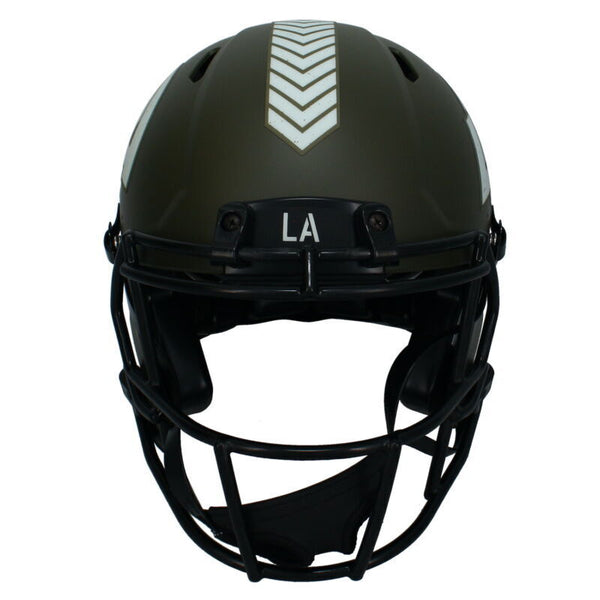 This Los Angeles Rams 2022 Salute to Service authentic speed helmet has been personally hand-signed by Super Sports Center exclusive athlete, Kyren Williams. It comes with an individually numbered, tamper-evident hologram from Beckett Authentic. To ensure authenticity, the hologram can be reviewed online. This process helps to ensure that the product purchased is authentic and eliminates any possibility of duplication or fraud.Kyren Williams is the newest exclusive athlete to the Super Sports Center family.