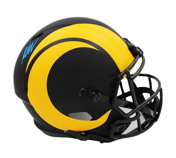 A Los Angeles Rams Speed Replica Eclipse NFL Helmet hand signed by Kyren Williams. The item and signature are in excellent condition. Kyren is a football running back for the Los Angeles Rams. He was drafted into the NFL in 2022. He played college football at Notre Dame. He was selected for the Pro Bowl in 2023. AUTHENTICATION: The item is a tagged with a Beckett Serial Numbered and Databased Hologram.