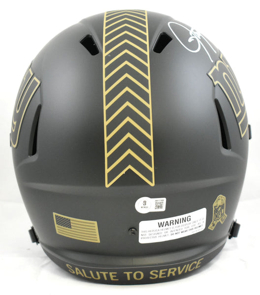 This is a Lawrence Taylor of the New York Giants autographed Riddell football full size Salute to Service Speed Replica helmet. This item has a Beckett Witnessed Authentication, which comes with a numbered hologram and a QR code for verification. You can view this item on the Beckett Authentication website, and it shows when and where the item was signed. It was signed either at a public autograph appearance or a private signing. This is a stock photo of the item. Although you may not receive this exact item, the item you receive is virtually identical, brand new, and in great shape. *Autograph location may vary* This is a Lawrence Taylor of the New York Giants autographed Riddell football full size Salute to Service Speed Replica helmet. This item has a Beckett Witnessed Authentication, which comes with a numbered hologram and a QR code for verification. You can view this item on the Beckett Authentication website, and it shows when and where the item was signed. It was signed either at a public autograph appearance or a private signing. This is a stock photo of the item. Although you may not receive this exact item, the item you receive is virtually identical, brand new, and in great shape. *Autograph location may vary*