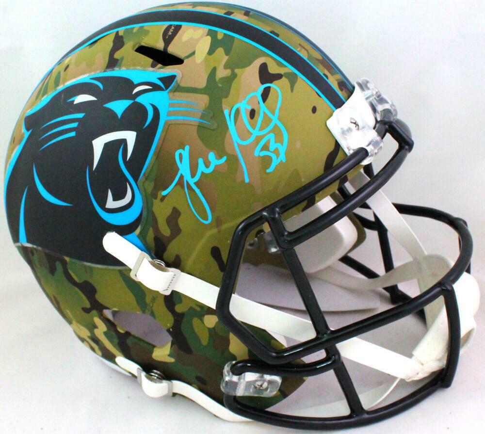 Luke Kuechly Autographed Carolina Panthers Camo F/S Helmet- Beckett W *Baby Blue This is a Luke Kuechly of the Carolina Panthers hand autographed Riddell Football Camo Full Size Replica Helmet. This item has a Beckett Witnessed Authentication, which comes with a numbered and a matching Certificate of Authenticity. You can view this item on the Beckett website and it shows when and where the item was signed. It was signed either at a public autograph appearance or a private signing. This is a stock photo of the item. Although you may not receive this exact item, the item you receive is virtually identical, brand new, and in great shape.