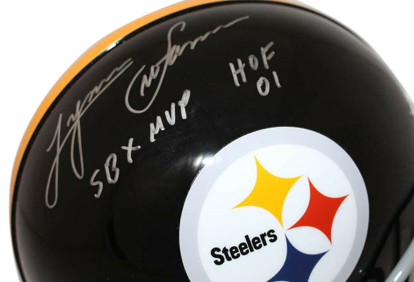 Lynn Swann Autographed Pittsburgh Steelers Authentic Helmet 2 Insc BAS 24114 This is a Pittsburgh Steelers full size throwback authentic/proline helmet that was personally signed by Lynn Swann with SB MVP and HOF inscriptions. This helmet includes a certificate of authenticity from James Spence Authentication (JSA) and Denver Autographs.