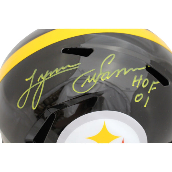 The number in the listing title is just an inventory sku for our records and is not the authentication number. The item pictured is a stock photo unless otherwise noted. This is a Pittsburgh Steelers Full Size VSR4 Replica Helmet that was personally autographed by Lynn Swann with "HOF" inscription. Includes a certificate of authenticity from Beckett Authentication Services (BAS) and Denver Autographs.FREE SHIPPING within the USA on orders over $10!