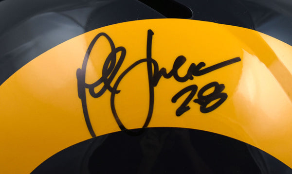 This is a Marshall Faulk of the Rams Autographed Riddell football full size Speed Replica helmet. This item has a Beckett Witnessed Authentication, which comes with a numbered hologram and a QR code for verification. You can view this item on the Beckett Authentication website and it shows when and where the item was signed. It was signed either at a public autograph appearance or a private signing. This is a stock photo of the item. Although you may not receive this exact item, the item you receive is virtually identical, brand new, and in great shape. *Autograph location may vary* This is a Marshall Faulk of the Rams Autographed Riddell football full size Speed Replica helmet. This item has a Beckett Witnessed Authentication, which comes with a numbered hologram and a QR code for verification. You can view this item on the Beckett Authentication website and it shows when and where the item was signed. It was signed either at a public autograph appearance or a private signing. This is a stock photo of the item. Although you may not receive this exact item, the item you receive is virtually identical, brand new, and in great shape. *Autograph location may vary*