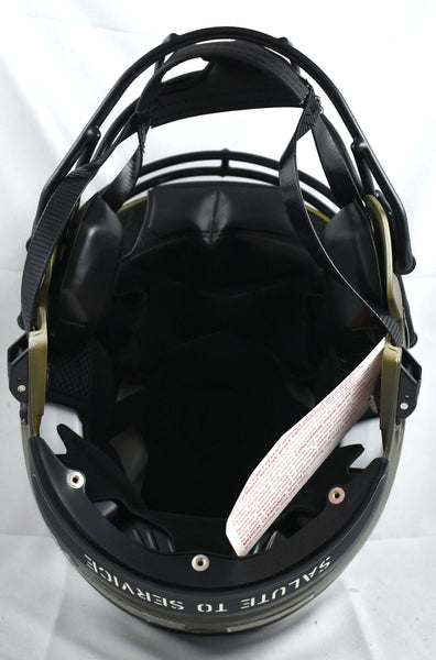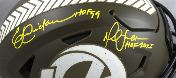 This is a Marshall Faulk and Eric Dickerson of the Rams Autographed Riddell football full size Salute to Service Speed Flex Authentic helmet. This item has a Beckett Witnessed Authentication, which comes with a numbered sticker hologram and a QR code for verification. You can view this item on the Beckett Authentication website and it shows when and where the item was signed. It was signed either at a public autograph appearance or a private signing. This is a stock photo of the item. Although you may not receive this exact item, the item you receive is virtually identical, brand new, and in great shape. *Autograph location may vary* This is a Marshall Faulk and Eric Dickerson of the Rams Autographed Riddell football full size Salute to Service Speed Flex Authentic helmet. This item has a Beckett Witnessed Authentication, which comes with a numbered sticker hologram and a QR code for verification. You can view this item on the Beckett Authentication website and it shows when and where the item was signed. It was signed either at a public autograph appearance or a private signing. This is a stock photo of the item. Although you may not receive this exact item, the item you receive is virtually identical, brand new, and in great shape. *Autograph location may vary*