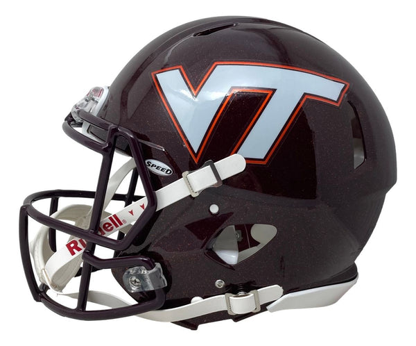 Featured is a Michael Vick signed Virginia Tech Hokies full size authentic speed helmet. This helmet has been hand signed by Vick and comes with the Beckett hologram and certificate of authenticity. This helmet would make a great addition to any sports memorabilia collection!. SPECIFICATIONS Autographed By: Michael Vick Team: Virginia Tech Hokies Sport: Football Authentication: Beckett Grading Services