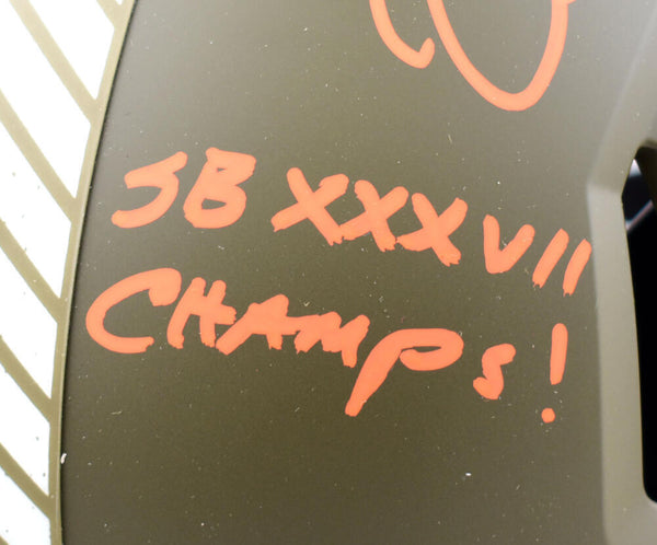 Mike Alstott Signed Buccaneers F/S Salute to Service Speed Authentic Helmet w/2 insc.-Beckett W Hologram *Orange This is a Mike Alstott of the Tampa Bay Buccaneers hand autographed Riddell football Salute to Service Speed Authentic full size helmet inscribed with "SB Champs, A-Train". This item has a Beckett Witnessed Authentication, which comes with a numbered sticker hologram and a QR code for verification. You can view this item on the Beckett Authentication website, it shows when and where the item was signed. It was signed either at a public autograph appearance or a private signing. This is a stock photo of the item. Although you may not receive this exact item, the item you receive is virtually identical, brand new, and in great shape.