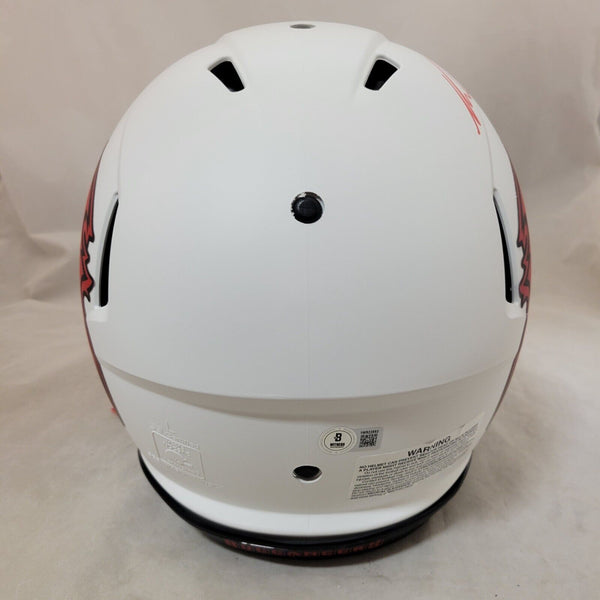 MIKE EVANS AUTOGRAPHS TAMPA BAY BUCCANEERS RIDDELL FULL SIZE LUNAR ECLIPSE SPEED AUTHENTIC HELMETBECKETT QR HOLOGRAM COATHIS MEANS THE HELMET WAS SIGNED WITH A BECKETT REPRESENTATIVE PRESENT SO YOU CAN BE 100% CERTAIN ITS THE REAL THING.