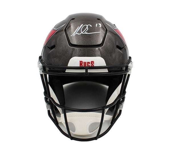 A Tampa Bay Buccaneers Speed Flex Authentic NFL Helmet hand signed by Mike Evans. The item and signature are in excellent condition. Mike was the 7th overall pick in the 1st round of the 2014 NFL Draft. AUTHENTICATION: The item is accompanied by a Beckett Serial Numbered and Databased Hologram
