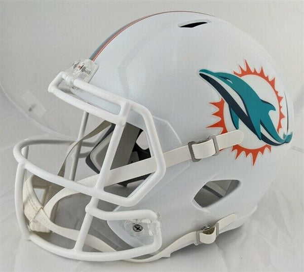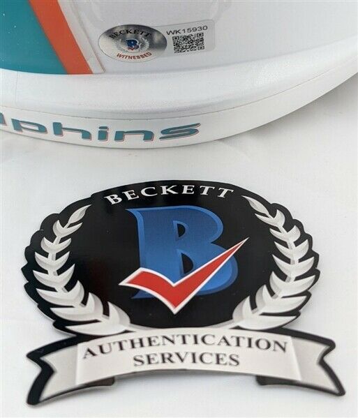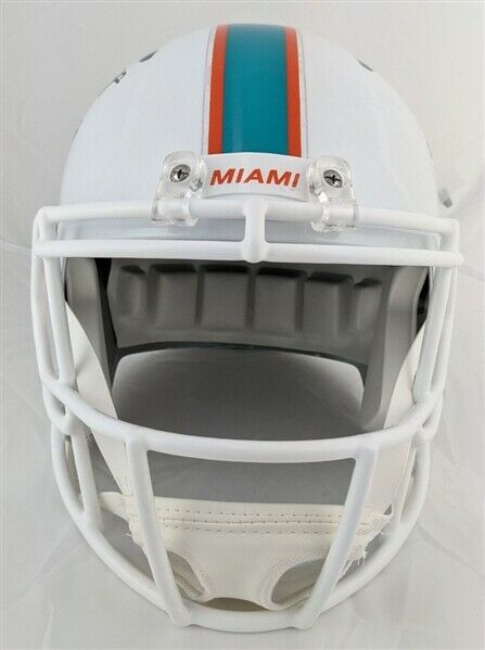 This autographed full size Riddell replica Speed helmet has been personally hand-signed by Mike Gesicki of the Miami Dolphins. This autograph is certified by Beckett Authentication Services (BAS) Witness Certification. That means that a Beckett representative was present when this item was signed. It comes with the numbered authentication hologram with a QR code that verifies the authentication on the Beckett website.