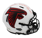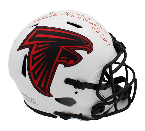 A Atlanta Falcons Speed Authentic Lunar NFL Helmet hand signed by Morten Andersen. The item and signature are in excellent condition. In addition to signing his name, Morten also inscribed "HOF 2017, THE GREAT DANE, 2544 Points" on the item. Morten was drafted into the NFL 1982 Round:4, Pick:86. Morten is a 2x Golden Toe Award winner, a 7x Pro Bowler, 5x First-team All-Pro, and Morten is in the New Orleans Hall of Fame. AUTHENTICATION: The item is accompanied by a Morten Andersen Exclusive Certificate of Authenticity - Morten Andersen Exclusive Serial Numbered and Databased Hologram - Picture of Morten from the signing