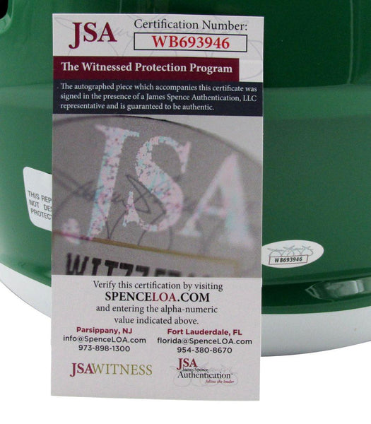 Nolan Smith Signed/Inscribed "Let's Hunt" Full Size Replica Kelly Green Football Helmet Philadelphia Eagles. This helmet is authenticated by JSA and includes their Tamper-proof Hologram Sticker and Certificate of Authenticity