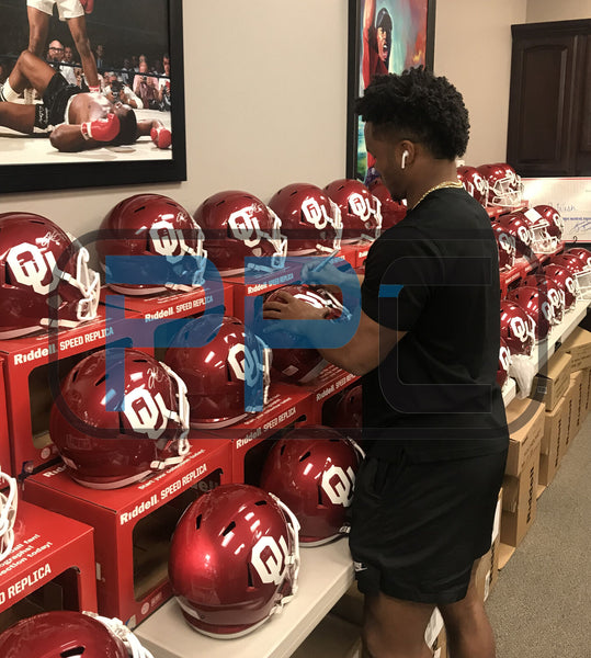 This Autographed Full Size Speed Rep Helmet has been Personally Signed by Kyler Murray of the Oklahoma Sooners. This item is 100% Authentic to include a Certificate of Authenticity (COA) / hologram by Beckett Authentication Services. This is a BAS Witnessed Protection Program item which means a Beckett Authentication Service representative was present when this item was being signed. This is a stock item. We conducted an autograph signing with Kyler Murray and we have several of these available. The one you will receive will be of equal quality to the one pictured. This item can be verified through BAS Witnessed. We only offers Authentic Autographs by Kyler Murray through Signings, In-Person Signings or Private Collections to include a 100% money back Lifetime Authenticity Guarantee.