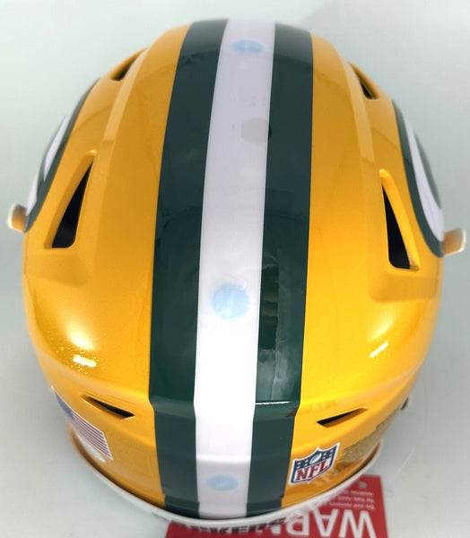 Riddell Full Size Authentic Speed Flex Helmet hand signed by Green Bay Packers Receiver DONALD DRIVER. The signature is in Yellow Paint Pen with the inscription "Packers for Life". This would make a great addition to any Packers collection.This item was signed at a private signing with us. This item is guaranteed to be 100% authentic and will include a COA from JSA authentication.