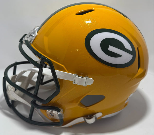 Riddell Full Size Replica Speed Helmet hand signed by Green Bay Packers Defender SANTANA DOTSON. The signature is in Black Paint Pen. This would make a great addition to any Packers collection.This item was signed at a private signing with us. This item is guaranteed to be 100% authentic and will include a COA hologram from Beckett authentication.