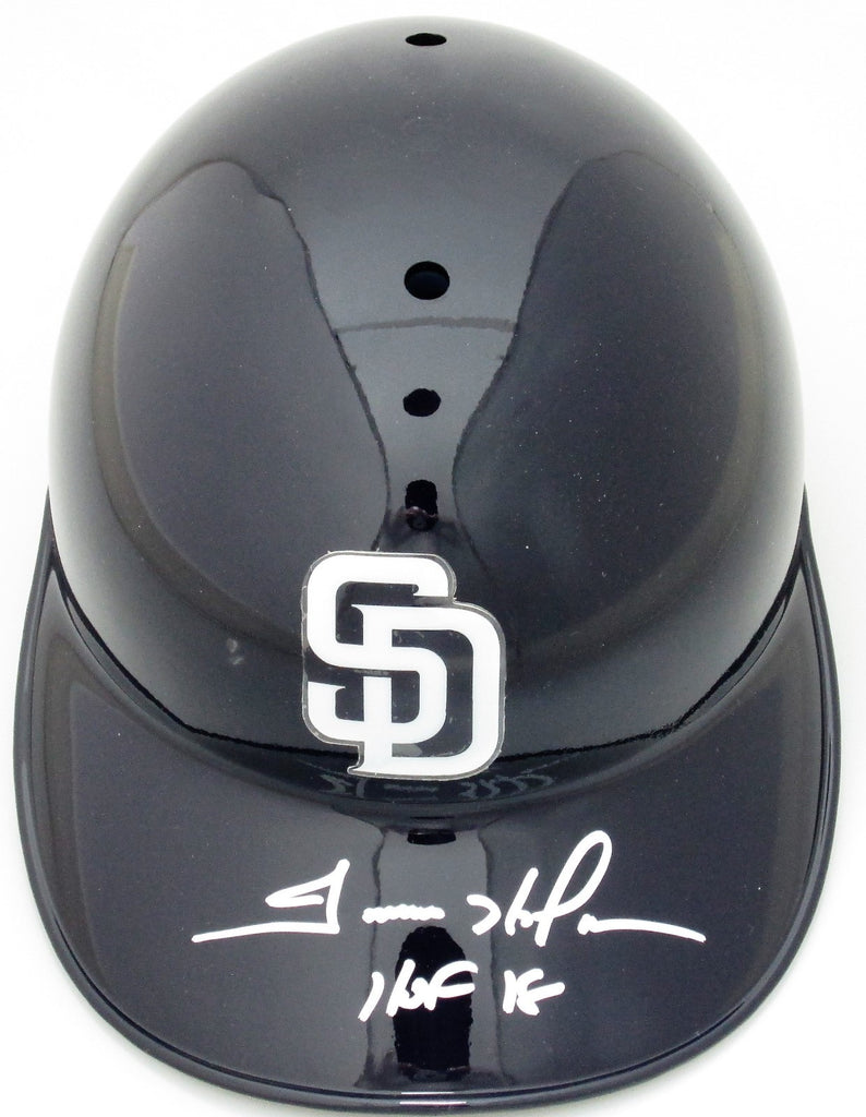 FULL SIZE HELMET BY San Diego Padres Hall of Famer TREVOR HOFFMAN. This item is signed in White Paint Pen with the inscription "HOF '18". This item was signed at a public signing and would make a great addition to any Padres collection. This autograph is guaranteed to be 100% authentic and will include a COA from JSA authentication.