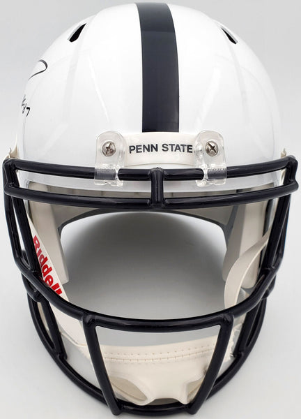 This is a Penn State Nittany Lions White Full Size Replica Speed Helmet that has been hand signed by Pat Freiermuth. This item has been certified authentic by Beckett Authentication (BAS) and comes with their tamper-proof QR Code sticker that can be verified on the Beckett-authentication.com.