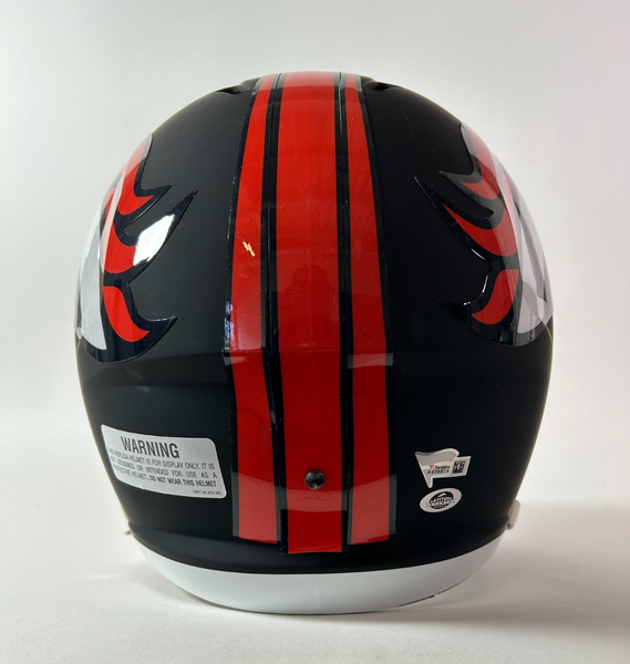A Legend's Signature This stunning black matte full-size replica helmet features the authentic autograph of NFL Hall of Famer Peyton Manning. One of the greatest quarterbacks in football history, Manning's legacy includes two Super Bowl championships, five MVP awards, and countless records that defined an era of excellence. Premium Black Matte Finish The sleek black matte design provides a sophisticated backdrop for Manning's signature, creating a striking display piece that stands out in any collection. This full-size replica helmet captures the authentic look and feel of professional equipment while serving as the perfect canvas for this legendary autograph. Fanatics Authentication Each helmet comes with a Certificate of Authenticity from Fanatics, the official memorabilia partner of the NFL. The tamper-evident hologram and COA guarantee the signature is 100% genuine, ensuring your investment is protected and authenticated by the industry's most trusted source. Museum-Quality Collectible Whether you're a Colts fan, Broncos supporter, or simply appreciate football greatness, this autographed helmet is a centerpiece worthy of your collection. Perfect for display in your home, office, or man cave, it's a tribute to one of the game's all-time greats. Highlights: Full-size replica helmet with black matte finish Hand-signed by Peyton Manning Fanatics Certificate of Authenticity included Pro Football Hall of Fame inductee 2x Super Bowl Champion, 5x NFL MVP Ready for premium display
