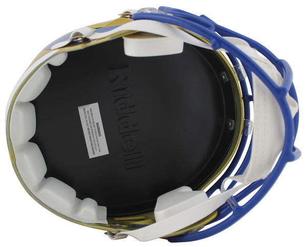 This Autographed Alternate Flash Riddell Full Size Speed Rep Helmet has been Personally Signed by Kyren Williams of the Los Angeles Rams. This item is 100% Authentic to include a hologram by Beckett Authentication Services. This item will come with an affixed Beckett Authentication Services (BAS) authentication sticker, which includes a scannable QR code to verify authenticity. Please note that Beckett no longer provides serial-numbered COA cards, and the attached BAS sticker will serve as the complete authentication for this item. We conducted an autograph signing with Kyren Williams where multiples of the same item were signed. While the photographs are representative of this item, the size, placement and strength of the signature may vary. Each item is hand signed, therefore, each autograph is unique. This item can be verified through BAS.