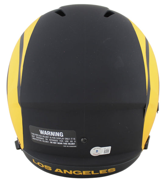 This Autographed Alternate Eclipse Riddell Full Size Speed Rep Helmet with the inscription of "HOF 20XI, ROY 1994" has been Personally Signed by Marshall Faulk of the St. Louis Rams. This item is 100% Authentic to include a hologram by Beckett Authentication Services. This item will come with the new Beckett Authentication hologram that has a scannable QR code rather than the traditional COA. If you would like to have a COA, you are welcome to reach out to Beckett for a printed certification once you receive your item. This is a BAS Witnessed Protection Program item which means a Beckett Authentication Service representative was present when this item was being signed. This is a stock item. We conducted an autograph signing with Marshall Faulk and we have several of these available. The one you will receive will be of equal quality to the one pictured. This item can be verified through BAS Witnessed.