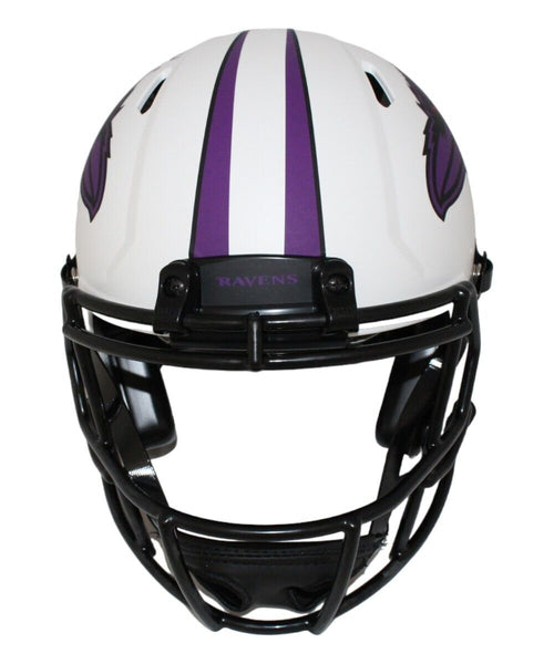 Ray Lewis Signed Baltimore Ravens Authentic Lunar Helmet 2 insc. Beckett 41204 The number in the listing title is just an inventory sku for our records and is not the authentication number. The item pictured is a stock photo unless otherwise noted. This is a Baltimore Ravens Authentic Full Size Lunar Helmet that was personally autographed by Ray Lewis with "HOF" and "SB XXV MVP" inscriptions. Includes a certificate of authenticity from Beckett Authentication Services (BAS) and Denver Autographs.