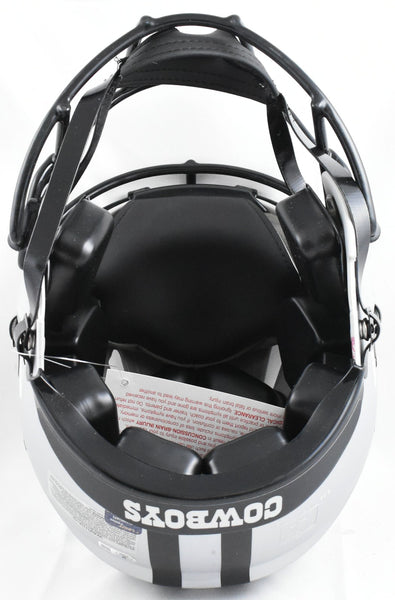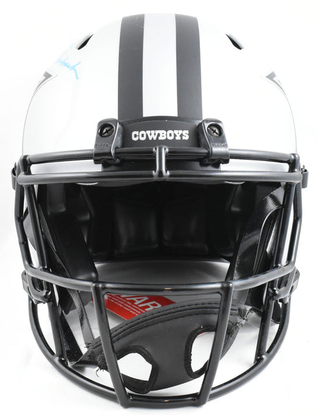 This is a Roger Staubach of the Dallas Cowboys Autographed Riddell football full size Rave Speed Authentic Helmet. This item has a Beckett Witnessed Authentication, which comes with a numbered hologram and a QR code for verification. You can view this item on the Beckett Authentication website and it shows when and where the item was signed. It was signed either at a public autograph appearance or a private signing. This is a stock photo of the item. Although you may not receive this exact item, the item you receive is virtually identical, brand new, and in great shape. *Autograph location may vary* This is a Roger Staubach of the Dallas Cowboys Autographed Riddell football full size Rave Speed Authentic Helmet. This item has a Beckett Witnessed Authentication, which comes with a numbered hologram and a QR code for verification. You can view this item on the Beckett Authentication website and it shows when and where the item was signed. It was signed either at a public autograph appearance or a private signing. This is a stock photo of the item. Although you may not receive this exact item, the item you receive is virtually identical, brand new, and in great shape. *Autograph location may vary*