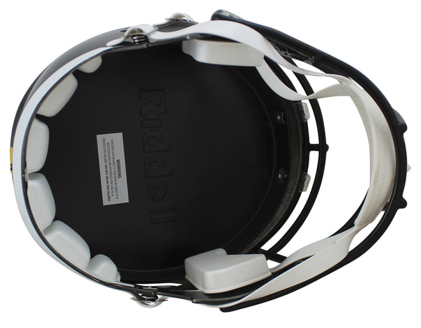 This Autographed w/ Silver Signature Full Size Speed Rep Helmet has been Personally Signed by Lynn Swann of the Pittsburgh Steelers. This item is 100% Authentic to include a hologram by Beckett Authentication Services. This item will come with the new Beckett Authentication hologram that has a scannable QR code rather than the traditional COA. If you would like to have a COA, you are welcome to reach out to Beckett for a printed certification once you receive your item. This is a BAS Witnessed Protection Program item which means a Beckett Authentication Service representative was present when this item was being signed. We conducted an autograph signing with Lynn Swann where multiples of the same item were signed. While the photographs are representative of this item, the size, placement and strength of the signature may vary. Each item is hand signed, therefore, each autograph is unique. This item can be verified through BAS Witnessed.