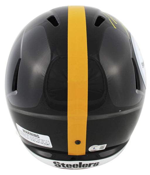 This Autographed Full Size Speed Rep Helmet has been Personally Signed by T.J. Watt of the Pittsburgh Steelers. This item is 100% Authentic to include a hologram by Beckett Authentication Services. This item will come with an affixed Beckett Authentication Services (BAS) authentication sticker, which includes a scannable QR code to verify authenticity. Please note that Beckett no longer provides serial-numbered COA cards, and the attached BAS sticker will serve as the complete authentication for this item. This is a BAS Witnessed Protection Program item which means a Beckett Authentication Service representative was present when this item was being signed. The authenticity can be verified on Beckett Authentication Services website. Please refer to photos for condition prior to purchase.