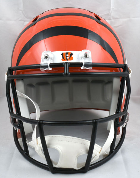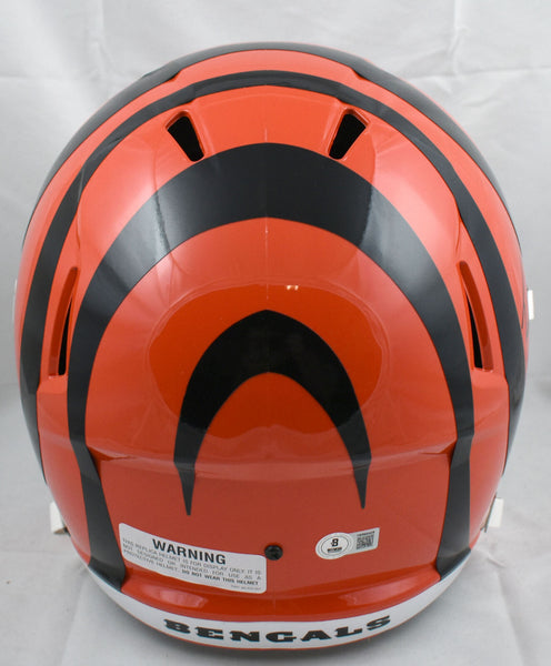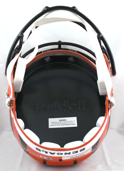 This is a Tee Higgins of the Cincinnati Bengals hand autographed Riddell football full size Speed Replica helmet. This item has a Beckett Witnessed Authentication, which comes with a numbered hologram and a QR code for verification. You can view this item on the Beckett Authentication website and it shows when and where the item was signed. It was signed either at a public autograph appearance or a private signing. This is a stock photo of the item. Although you may not receive this exact item, the item you receive is virtually identical, brand new, and in great shape. This is a Tee Higgins of the Cincinnati Bengals hand autographed Riddell football full size Speed Replica helmet. This item has a Beckett Witnessed Authentication, which comes with a numbered hologram and a QR code for verification. You can view this item on the Beckett Authentication website and it shows when and where the item was signed. It was signed either at a public autograph appearance or a private signing. This is a stock photo of the item. Although you may not receive this exact item, the item you receive is virtually identical, brand new, and in great shape.