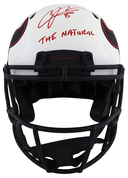 This Autographed Alternate Lunar Speed Mini Helmet has been Personally Signed by Andre Johnson of the Houston Texans. This item is 100% Authentic to include a hologram by Beckett Authentication Services. This item will come with the new Beckett Authentication hologram that has a scannable QR code rather than the traditional COA. If you would like to have a COA, you are welcome to reach out to Beckett for a printed certification once you receive your item. This is a BAS Witnessed Protection Program item which means a Beckett Authentication Service representative was present when this item was being signed. We conducted an autograph signing with Andre Johnson where multiples of the same item were signed. While the photographs are representative of this item, the size, placement and strength of the signature may vary. Each item is hand signed, therefore, each autograph is unique. This item can be verified through BAS Witnessed.