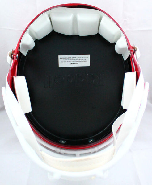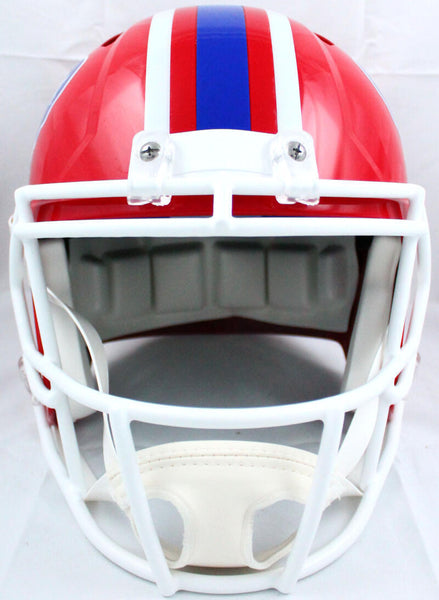 Thurman Thomas Autographed Bills 87-01 F/S Speed Helmet w/HOF-Beckett W Hologram *Silver This is a hand autograph of Thurman Thomas of the Buffalo Bills on a 87-01 Riddell Football Full Size Speed Replica Helmet. This item has a Beckett Witness Authentication, which comes with a numbered hologram and a QR code for verification. You can view this item on the Beckett website and it shows when and where the item was signed. It was signed either at a public autograph appearance or a private signing. This is a stock photo of the item. Although you may not receive this exact item, the item you receive is virtually identical and brand new in great shape.