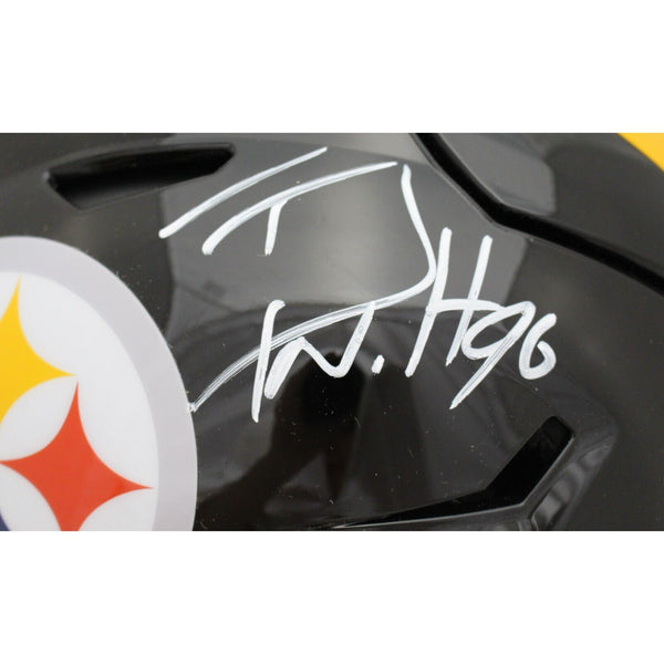 The number in the listing title is just an inventory sku for our records and is not the authentication number. The item pictured is a stock photo unless otherwise noted. This is a Pittsburgh Steelers Authentic Full Size Speed Flex Helmet that was personally autographed by TJ Watt. Includes a certificate of authenticity from Beckett Authentication Services (BAS) and Denver Autographs.