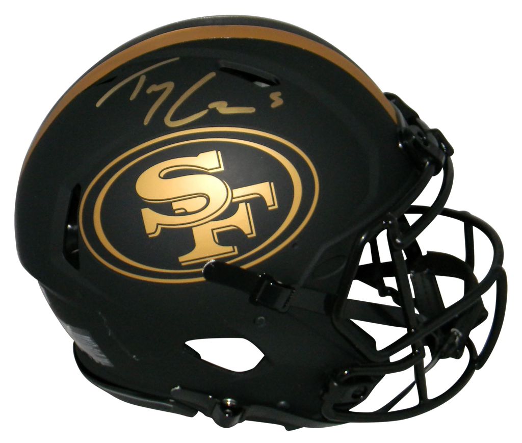 Trey Lance, the #3 overall pick for the San Francisco 49ers, has hand signed this 49ers Riddell Speed Eclipse full-size authentic helmet at a private signing. This helmet is fully padded inside like the ones worn on the field. This item is authenticated by Beckett Authentication Services, one of the best authenticators in the industry. Their tamper-evident hologram featuring a QR code and serial number is on the item. The authenticity can be verified online by entering the serial number or scanning the QR code.Item pictured may not be the exact item you will receive. It will be similar quality, and we guarantee your satisfaction.