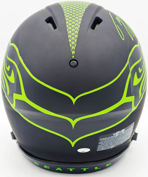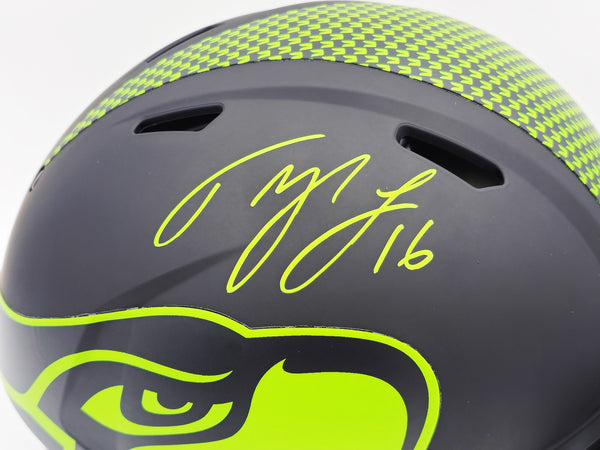 This is a Seattle Seahawks Eclipse Black Full Size Speed Authentic Helmet that has been hand signed by Tyler Lockett. The Eclipse helmets are delicate and may have some marks or scratches on them. This item was signed in the presence of a Mill Creek Sports representative and comes with their serial numbered hologram and matching certificate of authenticity.