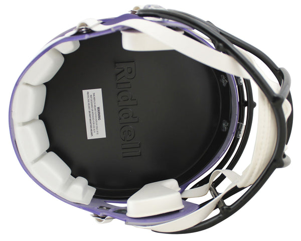 This Autographed Full Size Speed Rep Helmet has been Personally Signed by Jared Allen of the Minnesota Vikings. This item is 100% Authentic to include a hologram by Beckett Authentication Services. This item may come with the new Beckett Authentication hologram that has a scannable QR code rather than the traditional COA. If you would like to have a COA, you are welcome to reach out to Beckett for a printed certification once you receive your item. This is a BAS Witnessed Protection Program item which means a Beckett Authentication Service representative was present when this item was being signed. This is a stock item. We conducted an autograph signing with Jared Allen and we have several of these available. The one you will receive will be of equal quality to the one pictured. This item can be verified through BAS Witnessed.
