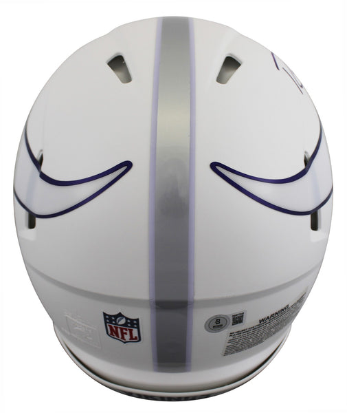 This Autographed 2024 On-Field Alternate Riddell Full Size Speed Proline Helmet W/ Uv Mirrored Back Acrylic Display Case has been Personally Signed by Randy Moss of the Minnesota Vikings. This item is 100% Authentic to include a hologram by Beckett Authentication Services. This item will come with an affixed Beckett Authentication Services (BAS) authentication sticker, which includes a scannable QR code to verify authenticity. Please note that Beckett no longer provides serial-numbered COA cards, and the attached BAS sticker will serve as the complete authentication for this item. This is a BAS Witnessed Protection Program item which means a Beckett Authentication Service representative was present when this item was being signed. We conducted an autograph signing with Randy Moss where multiples of the same item were signed. While the photographs are representative of this item, the size, placement and strength of the signature may vary. Each item is hand signed, therefore, each autograph is unique. This item can be verified through BAS Witnessed.