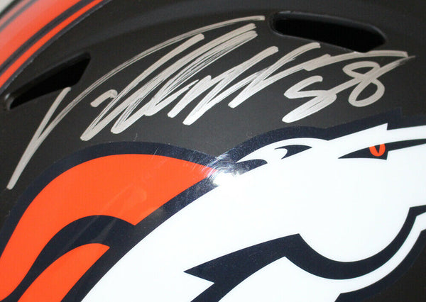 Von Miller Autographed Denver Broncos Black Matte Replica Helmet JSA 24304 This is a Denver Broncos full size black matte replica helmet that was personally autographed by Von Miller. This helmet includes a certificate of authenticity from James Spence Authentication (JSA) and Denver Autographs.