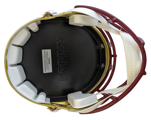 This Autographed Alternate Flash Riddell Full Size Speed Rep Helmet with the inscription of "SB XVII MVP (Riggins), SB XXII MVP (Williams), SB XXVI MVP (Rypien)" has been Personally Signed by Doug Williams, Mark Rypien & John Riggins of the Washington Football Team. This item is 100% Authentic to include a hologram by Beckett Authentication Services. This item may come with the new Beckett Authentication hologram that has a scannable QR code rather than the traditional COA. If you would like to have a COA, you are welcome to reach out to Beckett for a printed certification once you receive your item. This is a BAS Witnessed Protection Program item which means a Beckett Authentication Service representative was present when this item was being signed. We conducted an autograph signing with Doug Williams, Mark Rypien & John Riggins where multiples of the same item were signed. While the photographs are representative of this item, the size, placement and strength of the signature may vary. Each item is hand signed, therefore, each autograph is unique. This item can be verified through BAS Witnessed.
