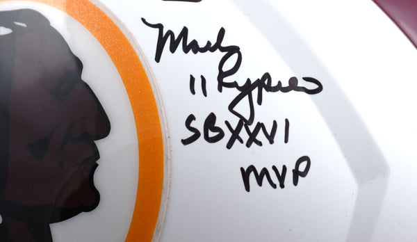 This is a Doug Williams, John Riggins, Mark Rypien of the Washington Redskins Autographed Riddell football full size Flat White Speed Authentic helmet. Inscribed SB MVPs. This item has a Beckett Witnessed Authentication, which comes with a numbered sticker hologram and a QR code for verification. You can view this item on the Beckett Authentication website and it shows when and where the item was signed. It was signed either at a public autograph appearance or a private signing. This is a stock photo of the item. Although you may not receive this exact item, the item you receive is virtually identical, brand new, and in great shape. *Autograph location may vary* This is a Doug Williams, John Riggins, Mark Rypien of the Washington Redskins Autographed Riddell football full size Flat White Speed Authentic helmet. Inscribed SB MVPs. This item has a Beckett Witnessed Authentication, which comes with a numbered sticker hologram and a QR code for verification. You can view this item on the Beckett Authentication website and it shows when and where the item was signed. It was signed either at a public autograph appearance or a private signing. This is a stock photo of the item. Although you may not receive this exact item, the item you receive is virtually identical, brand new, and in great shape. *Autograph location may vary*