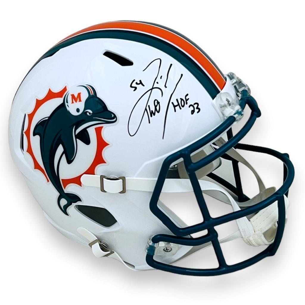 This signed item is brand new in box. This item will make a great gift or a great addition to any collection at an AFFORDABLE PRICE! ATHLETE: Zach Thomas ITEM: Miami Dolphins Speed Rep Helmet AUTHENTICATION: This item comes with a Beckett "Witnessed" Certificate of Authenticity and serial #'ed hologram affixed to the item. To ensure authenticity, the hologram can be reviewed online. This process helps to ensure that the product purchased is authentic and eliminates any possibility of duplication or fraud. This item was signed in the presence of a Beckett representative.
