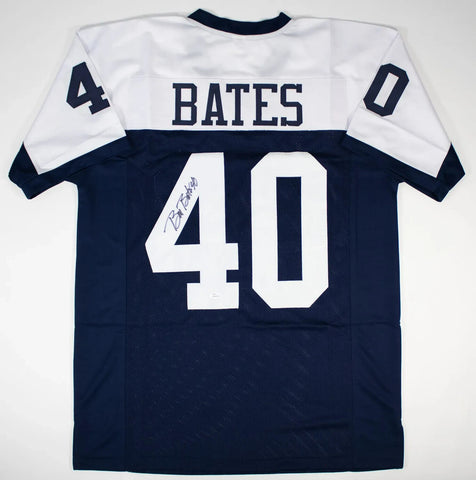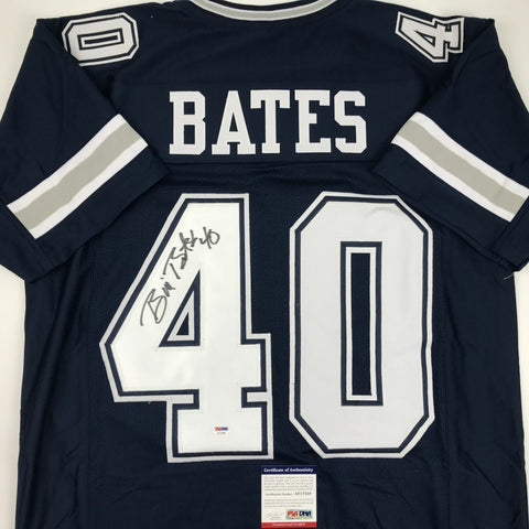 Autographed/Signed BILL BATES Dallas Dark Blue Football Jersey PSA/DNA COA Auto