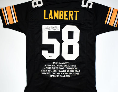 Jack Lambert Autographed Black Pro Style STAT Jersey w/ HOF- Beckett W Holo *Blk
