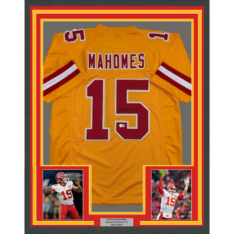 Framed Autographed/Signed Patrick Mahomes 35x39 KC Yellow Jersey Beckett BAS COA