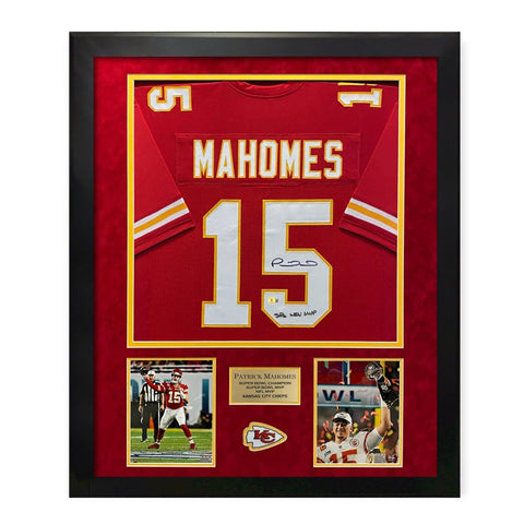 Chiefs Patrick Mahomes Signed Red Nike SB LVIII Logo Framed Jersey BAS Witness