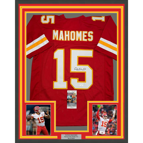 Framed Autographed/Signed Patrick Mahomes 35x39 Chiefs Red Jersey Fanatics COA