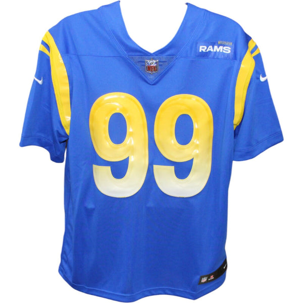 Aaron Donald Autographed/Signed Nike Vapor Jersey Blue Jersey Beckett 43836 The number in the listing title is just an inventory sku for our records and is not the authentication number. The item pictured is a stock photo unless otherwise noted. This is a Los Angeles Rams Nike Vapor Blue Jersey sz XL that was personally autographed by Aaron Donald. Includes a certificate of authenticity from Beckett Authentication Services (BAS) and Denver Autographs.