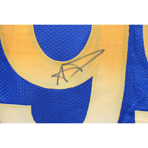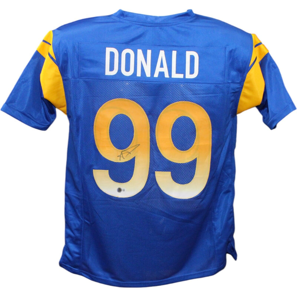 Aaron Donald Autographed/Signed Pro Style Blue Jersey Beckett 43853 The number in the listing title is just an inventory sku for our records and is not the authentication number. The item pictured is a stock photo unless otherwise noted. This is a Pro Style Blue Jersey that was personally autographed by Aaron Donald. Includes a certificate of authenticity from Beckett Authentication Services (BAS) and Denver Autographs.