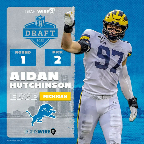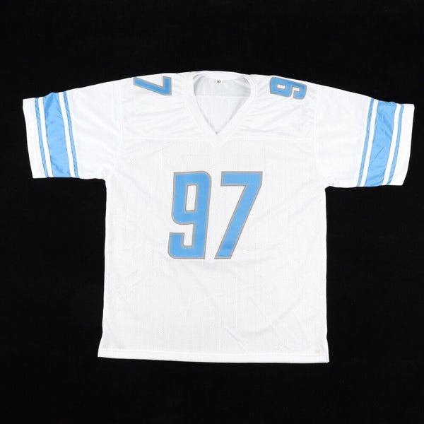 Custom on-field style jersey. Everything is sewn on, size XL. Hand-signed by Aidan Hutchinson.The lot / autograph(s) includes an official Beckett Authentication Services serially-numbered hologram and QR Code card for authenticity purposes. The signing of this item was witnessed by Beckett.Authentication: Beckett Hologram with QR Code card